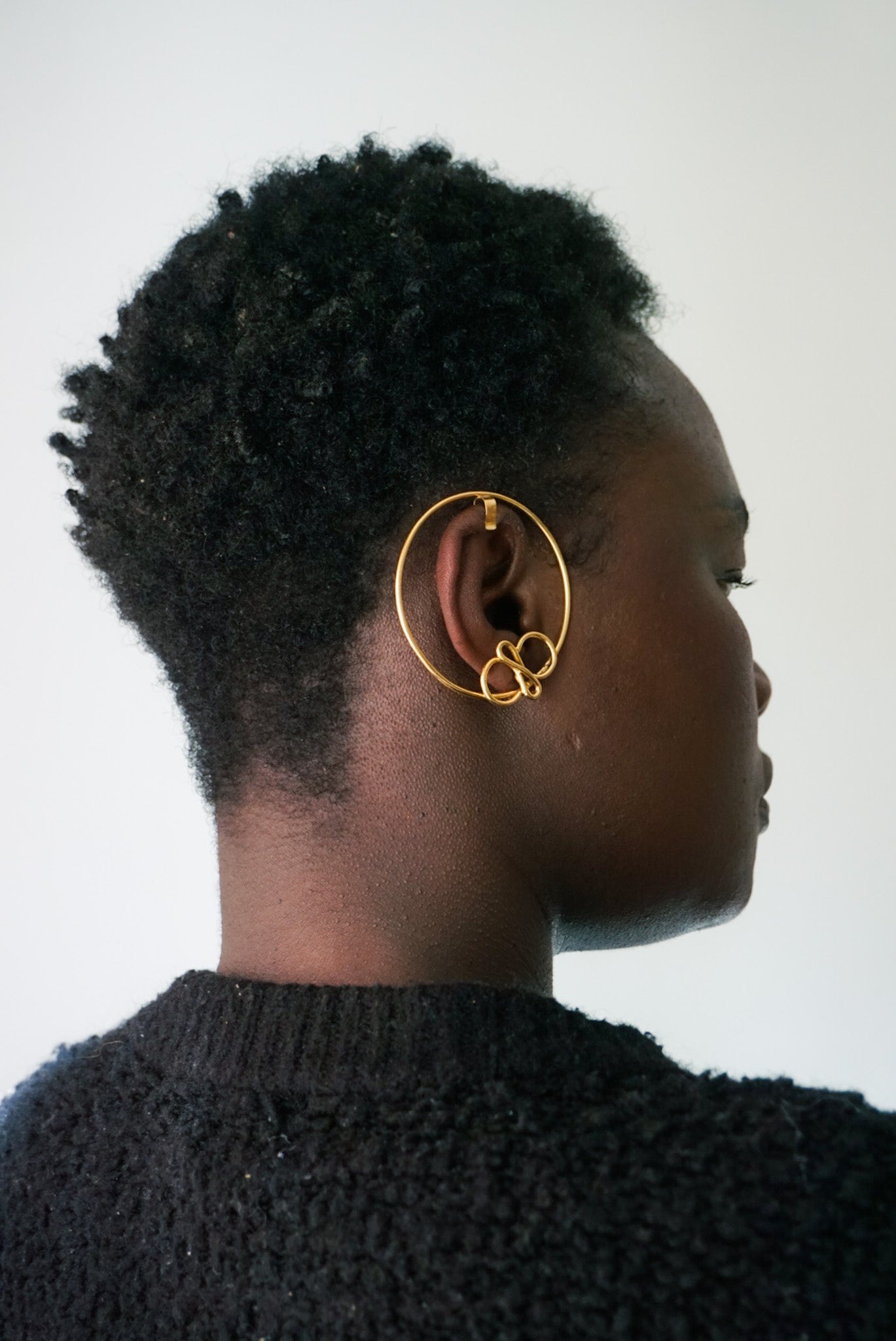 Chaque bijou de la collection correspond à une lettre du mot SCARIFICATIONS. 14 lettres, 14 boucles d’oreilles (et bientôt des bagues), dessinées comme des symboles.