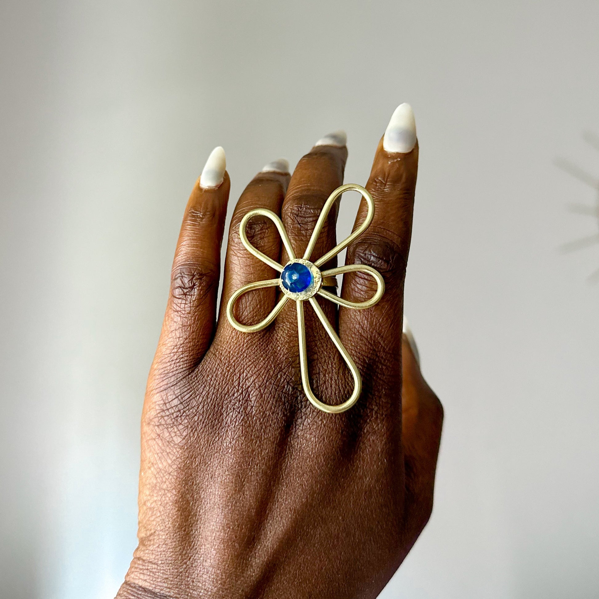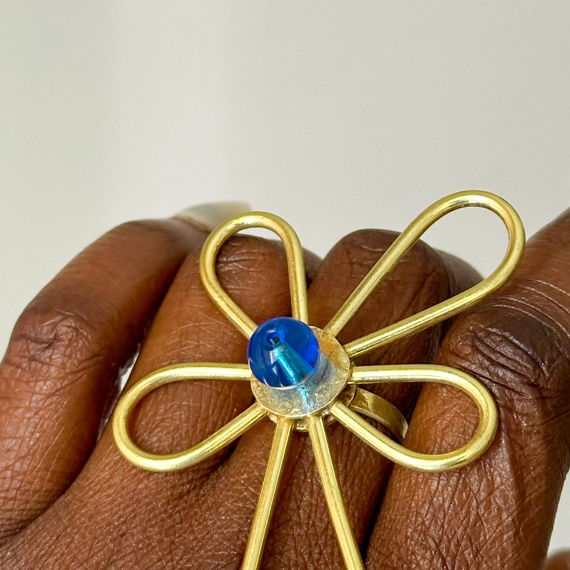Bague Ethnique en Bronze Whévo avec perle Bleu
